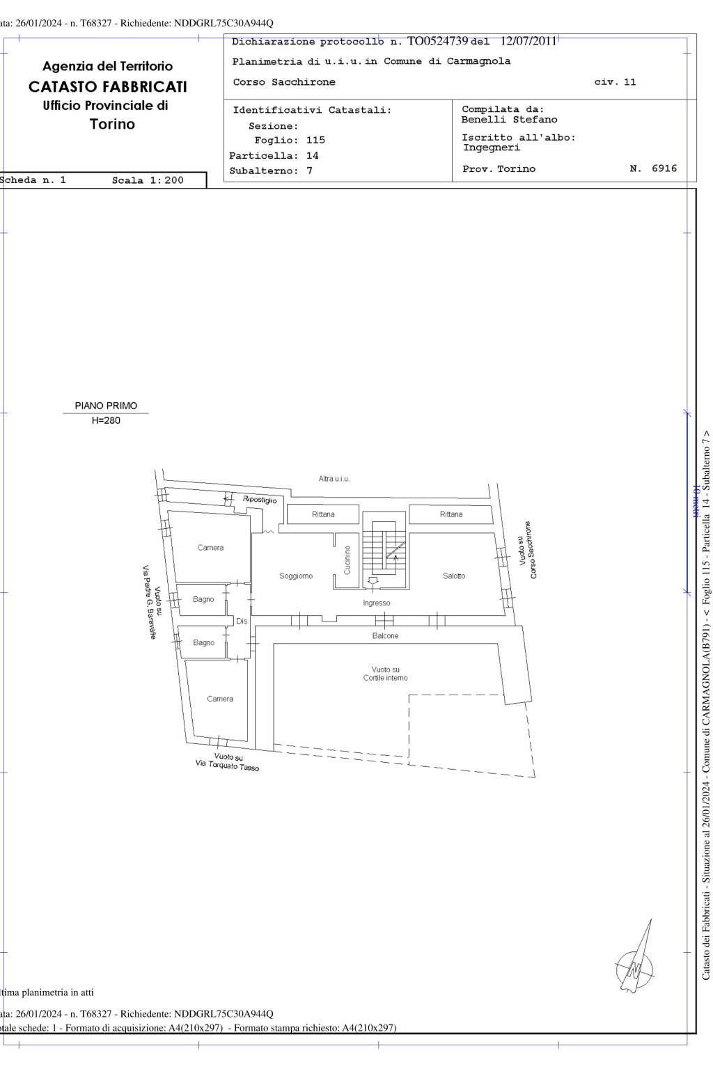 Carmagnola pieno Centro Storico, Corso Sacchirone, comodo a tutti i servizi che offre il paese, proponiamo in palazzina signorile d'epoca, ampio appartamento ristrutturato negli anni 80 e già dotato di serramenti con doppio vetro, sito al piano primo, composto da ingresso, grande salone con affaccio sui giardini del comune, soggiorno ben esposto di oltre 20 metri quadrati con angolo cottura e dispensa, un disimpegno, due camere da letto, due bagni, un balcone e un bel terrazzino. Dotato di porta di sicurezza. Completano la proprietà un box auto acquistabile a parte. Riscaldamento autonomo. Privo di spese accessorie. PER INFORMAZIONI CONTATTACI AL 011-9715951 E-MAIL: dedimmobiliare1972@libero.it www.immobiliareded.it E SEGUICI ANCHE SU FACEBOOK E SU INSTAGRAM #dedimmobiliare APE G 214,31 Kwh/m2